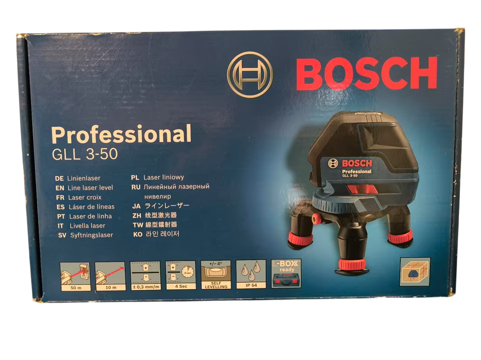 Beschreibung: Aus unserem Messgeräte-Bestand bieten wir einen professionellen Linienlaser von Bosch an. Das Gerät ist unverzichtbar für präzise Ausrichtungsarbeiten im Trockenbau, bei der Fliesenverlegung oder Elektroinstallation.
